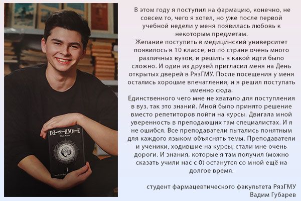 Далее с вами свяжется специалист и проговорит дальнейшие шаги. Полную информацию о подготовительных курсах можно получить в отделе довузовской подготовки и профориентационной работы университета по телефону: (4912) 97-18-48, y.kleimenova@rzgmu.ru