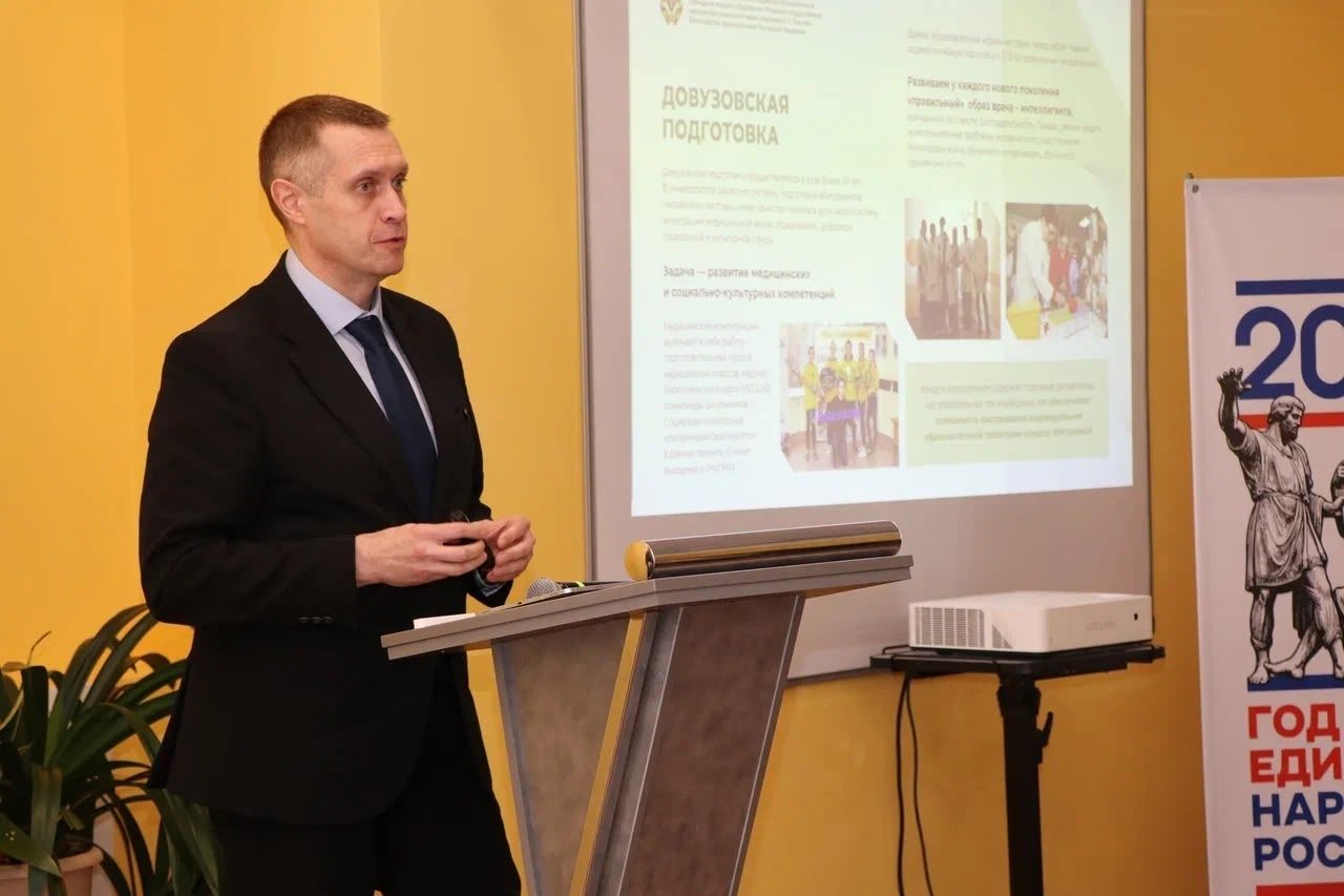 В рамках секции «Медицинские классы и классы естественно-научного профиля» Роман Калинин представил опыт взаимодействия университета со школами. В своём выступлении он подчеркнул важность ранней профориентации и системной подготовки будущих медицинских кадров.