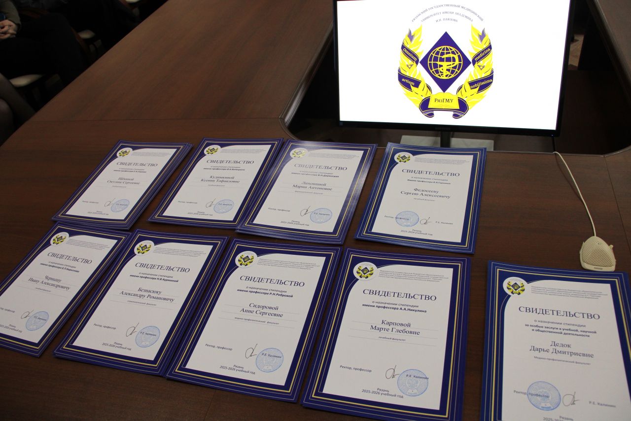 В Рязанском государственном медицинском университете имени академика И. П. Павлова состоялось торжественное вручение именных стипендий. Награды получили студенты, достигшие особых успехов в учёбе, науке и общественной жизни.